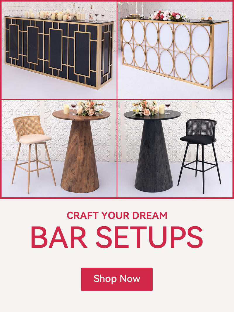 View full detailsAdd a touch of rustic sophistication to your event space with the CONO Oak Brown Wood-Grain Cocktail Table. Featuring a smooth round top and a tape...