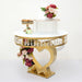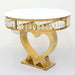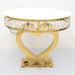 Our lovely GEMMA HATHOR cake table with a stainless steel heart-shaped base and a frame lined with hanging chandelier crystals is a twist on our standard GEMMA table.